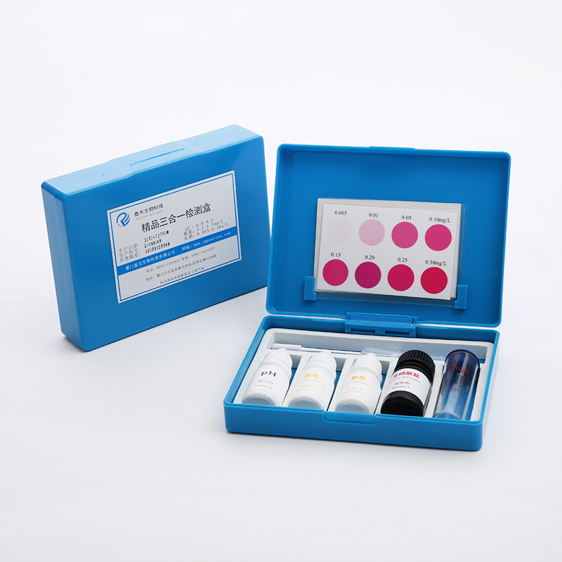 亚硝酸盐试剂为一体化固体,保质期可达两年,并且具有非常好的灵敏度和抗干扰性,反应时间只需5分钟即可。